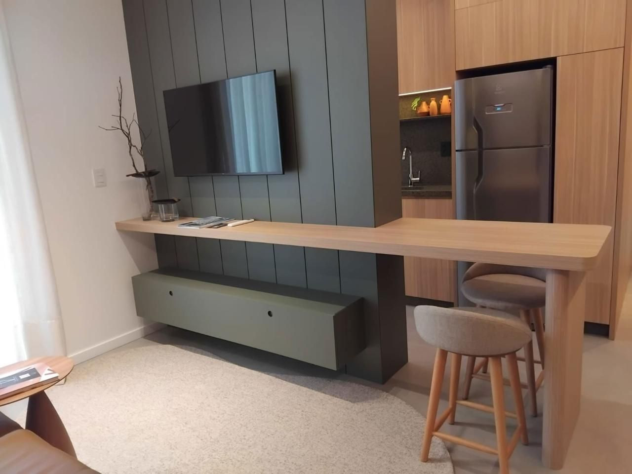 - Ambiente social integrado cozinha e sacada