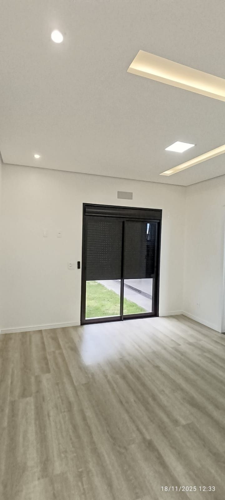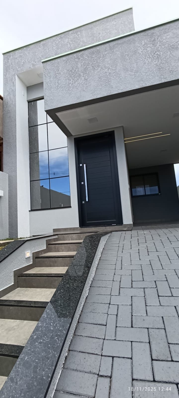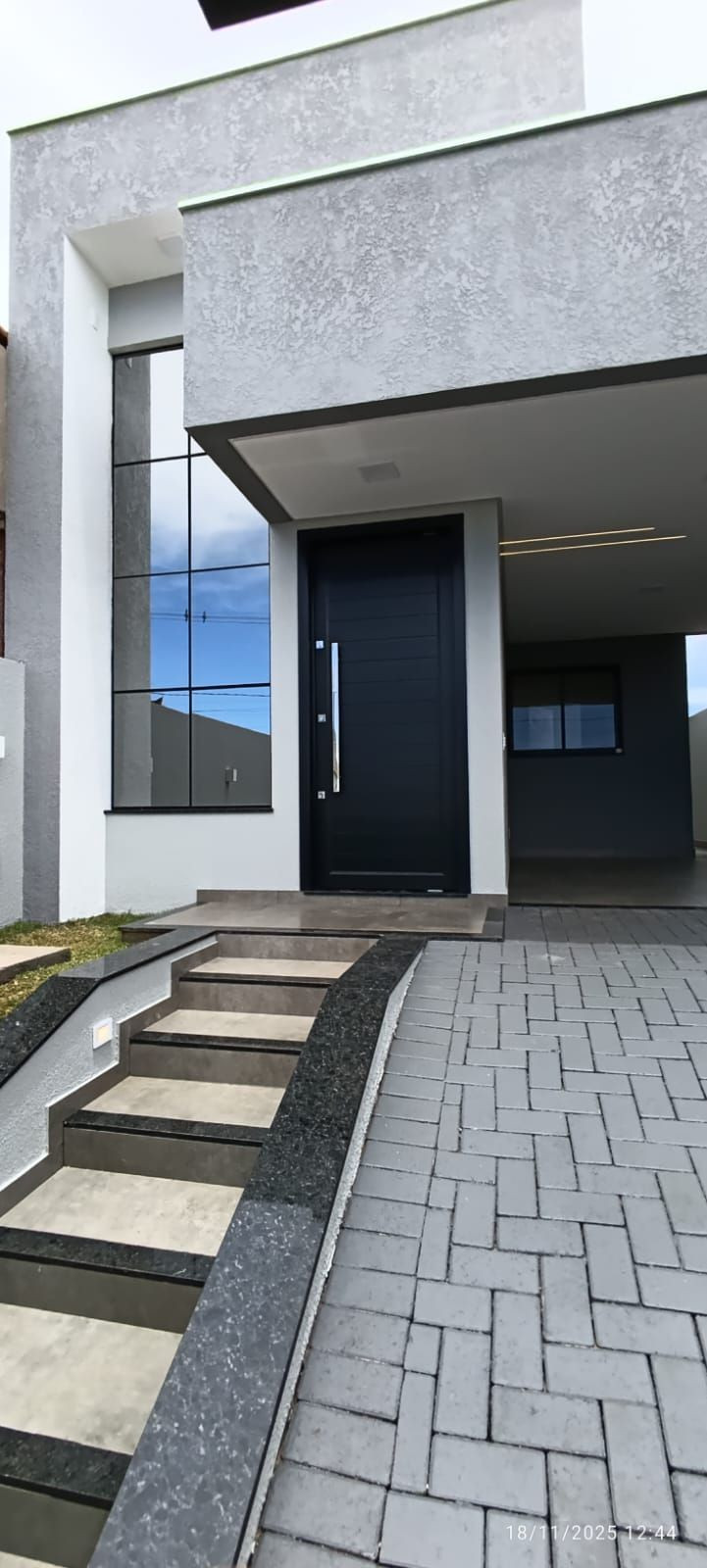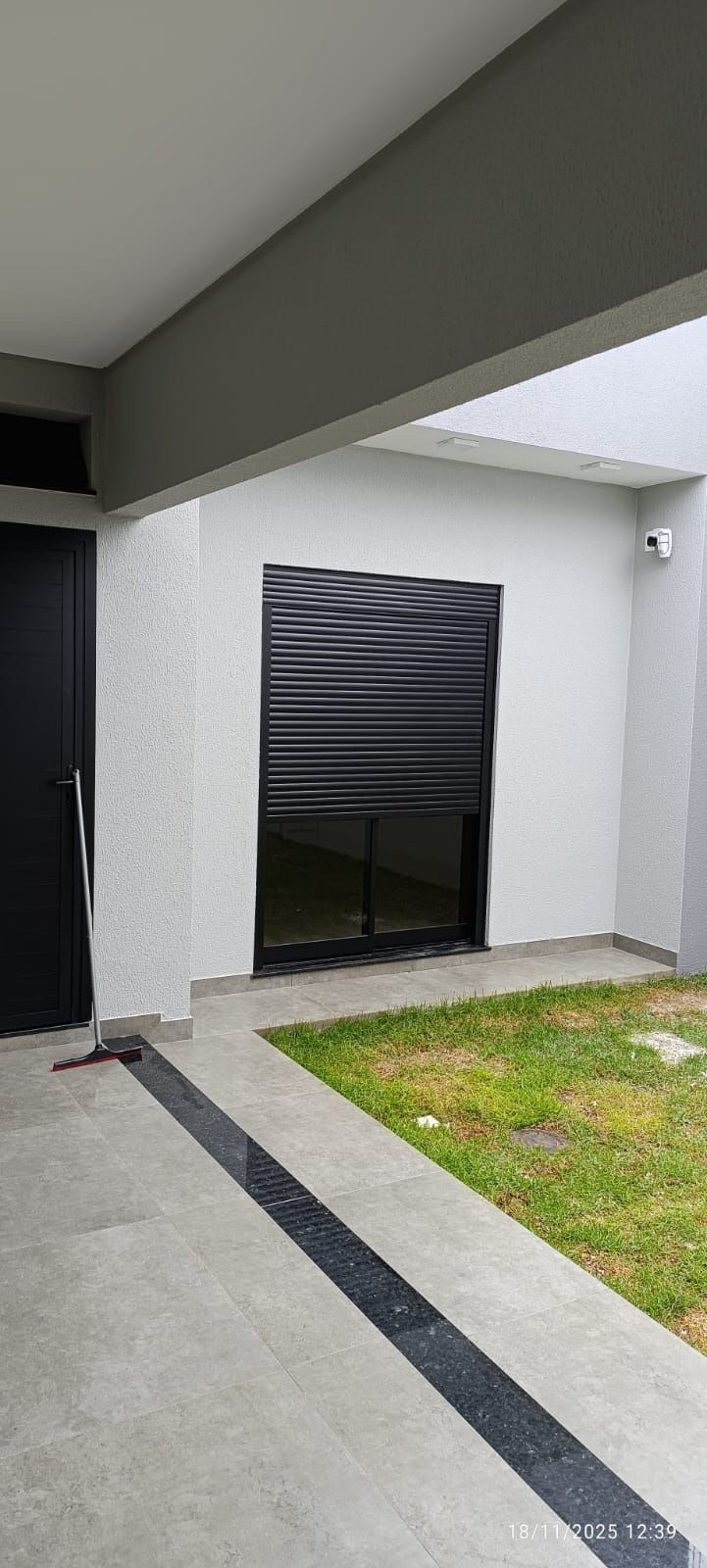 - Aberturas Prioriza em alumínio preto, com persianas integradas automatizadas, vidros fumê;