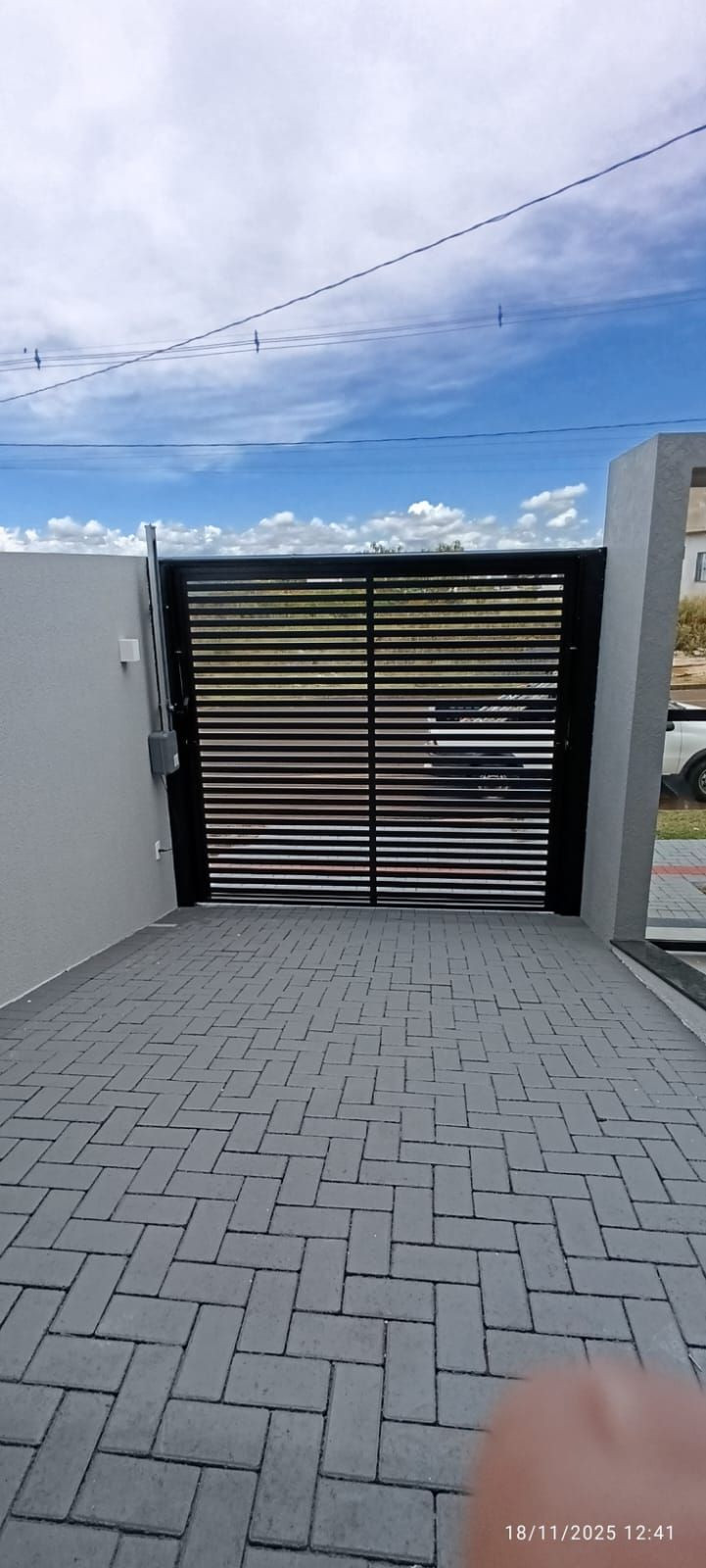 - Portão em alumínio com motor de elevação com corrente;