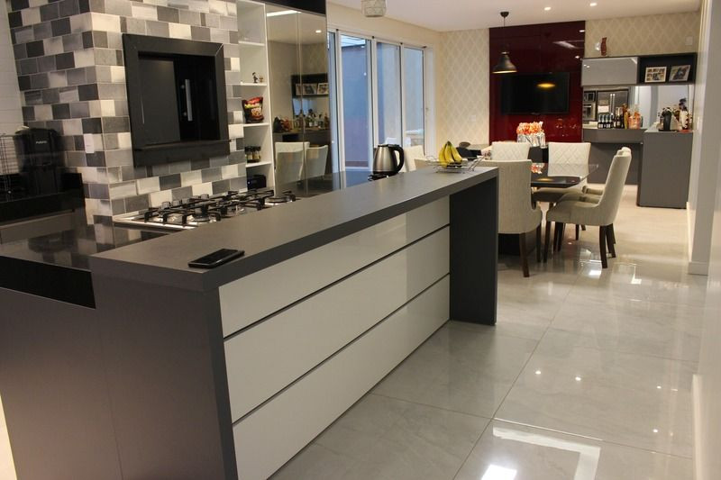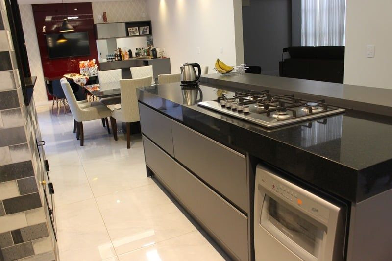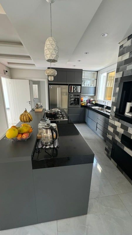 A área social é um espetáculo à parte: cozinha integrada com sala de jantar e churrasqueira, perfeita para momentos de confraternização. A sala de TV com pé direito duplo e um elegante lavabo complementam o ambiente. Um escritório dedicado atende às suas necessidades.